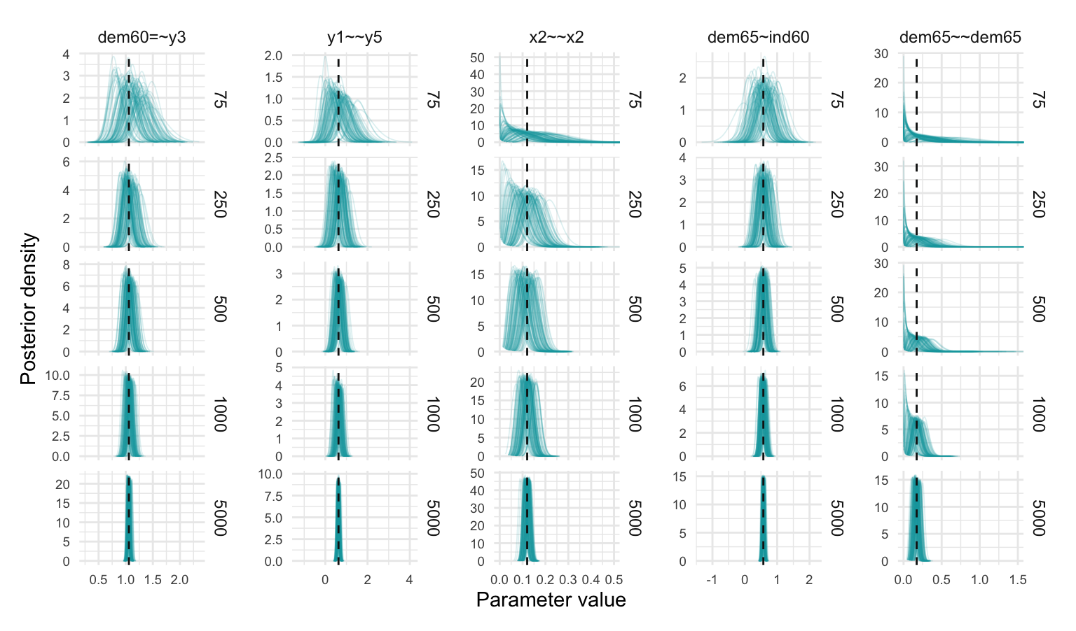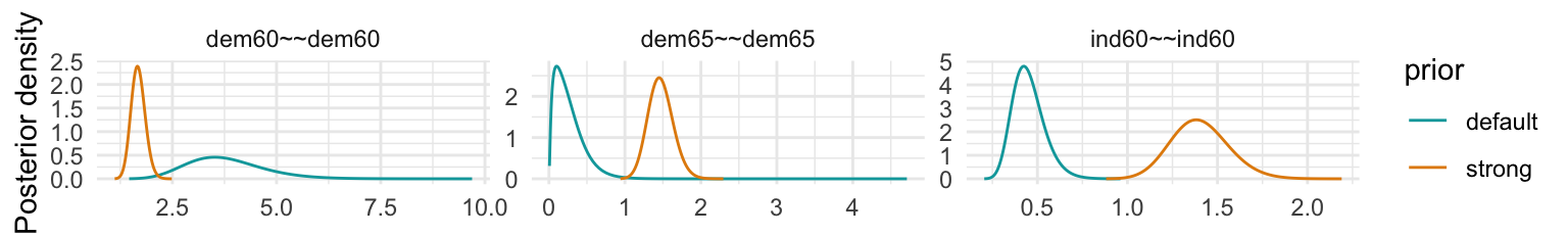 asem(), acfa(), agrowth() with dp = blavaan::dpriors() option.