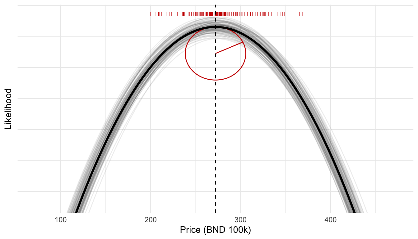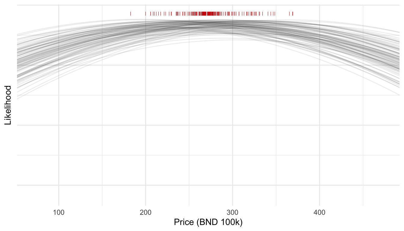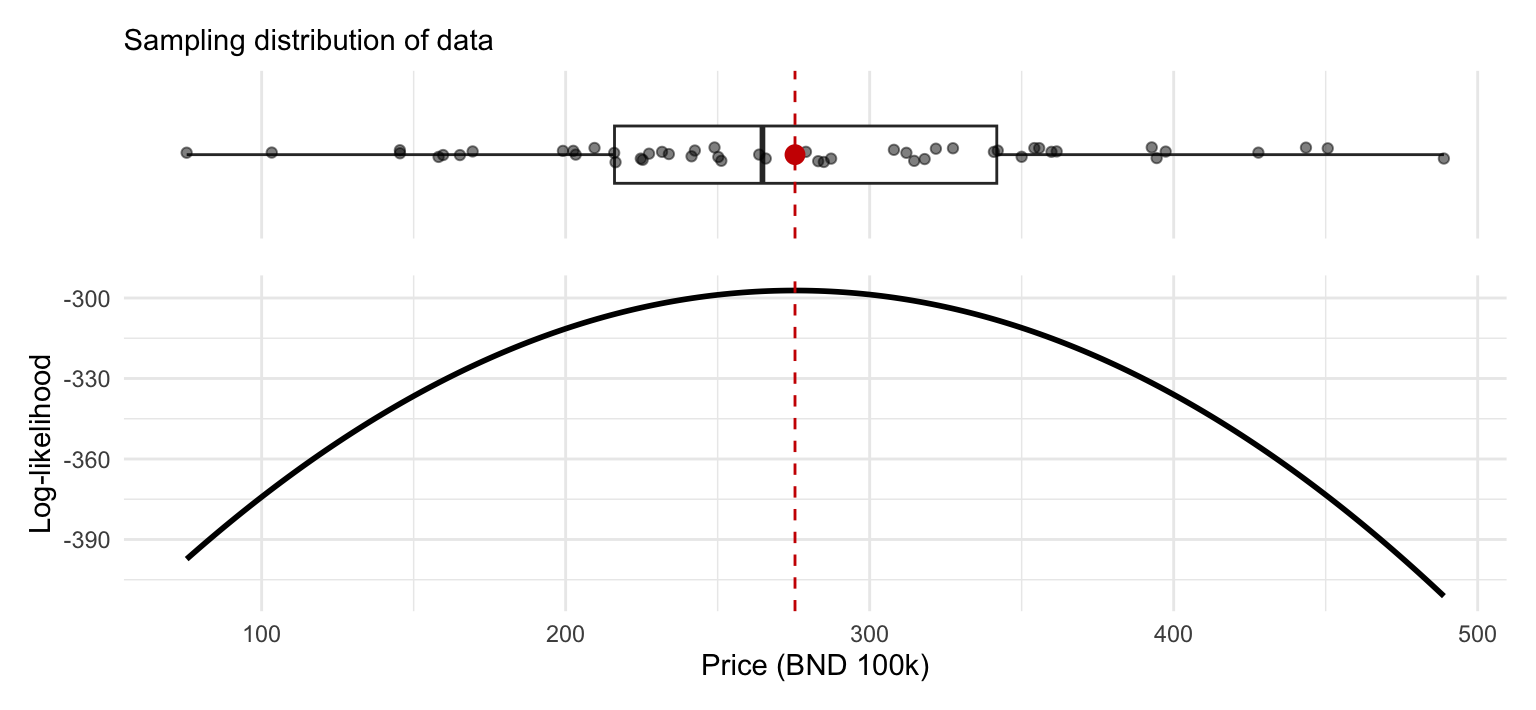 Example 2 Sample \(n=50\) house prices randomly in Brunei.